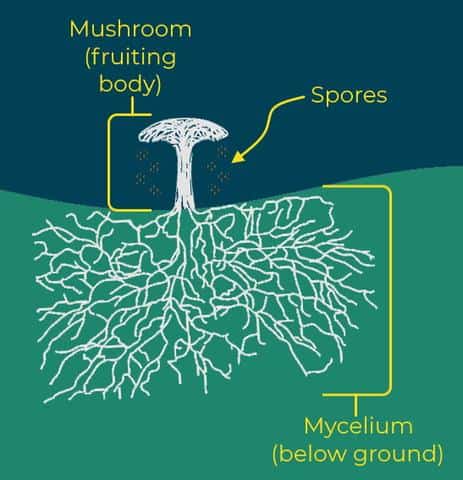 Ready for the easiest concept of the day? The mycelium and the mushroom are not the same.