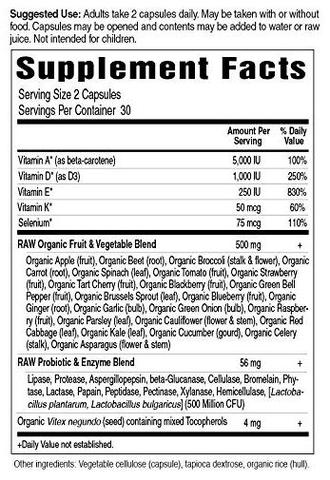 - Count the number of things in the blend. In this example, there are 23! Ingredients in the “Raw” fruit & veggie blend.